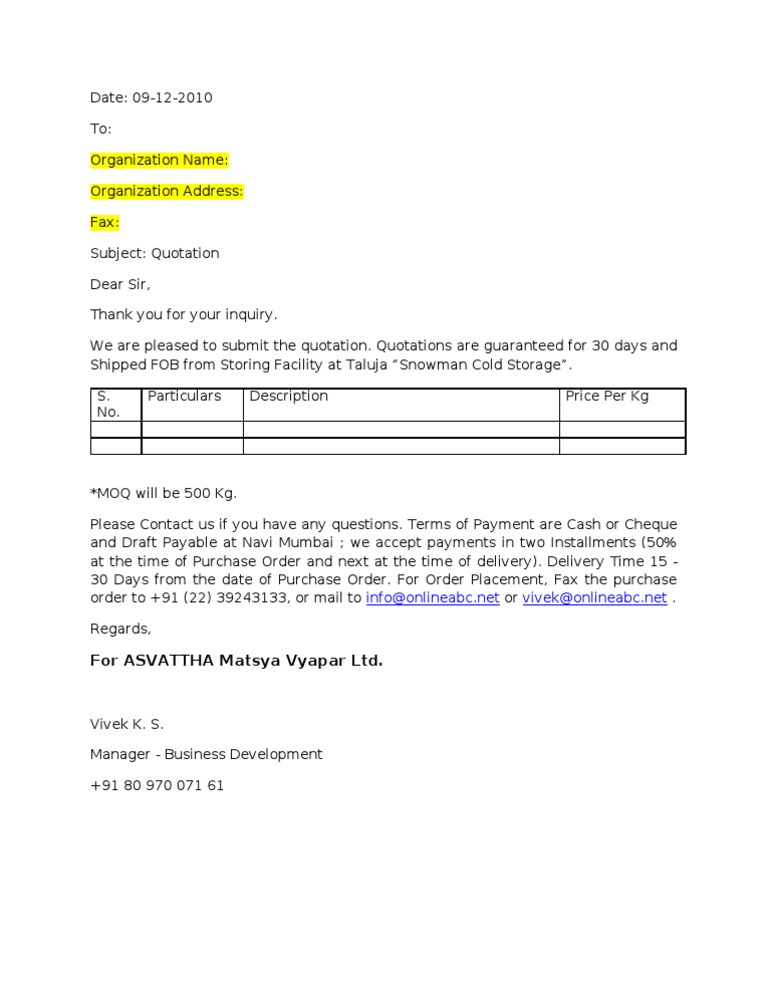 Once the quotation reaches us, our representative will call upon your office for further correspondence. Letter of acceptance sample rent receipt template for dummies the downside risk of rent receipt template another instrument necessary in the industry owner's toolbox is templates for several types of receipts they might need to. How to frame quotation letter. The cover letter should explain why your work is perfect for their journal and why it will be of interest to the journal's readers. Cover letter for a cost quotation. It demonstrates interest in the goods or services supplied and the intention to collaborate in business. That it is not under consideration for publication anywhere else; If you need further help to write a cover letter for a journal, you can download and use our sample template as a guide. I request you to send me a quotation for all the above mentioned activities. Quotation letters allow individuals, companies, and organizations to inquire about the prices of materials and services offered by certain the act of sending quotation letters to businesses cuts down on time and effort that are usually spent by prospective buyers in inquiring the prices of goods. Franchise request letter bid request letter. Section b supplies or services schedulenonappropriated funds b 2 a description of the services to be furnished the specifications. Type your title in upper and lowercase letters centered in the upper half of the page.
